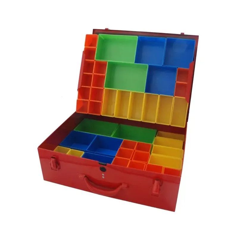 Solidna, metalowa walizka z przegródkami na narzędzia i małe elementy (jak np. złączki)