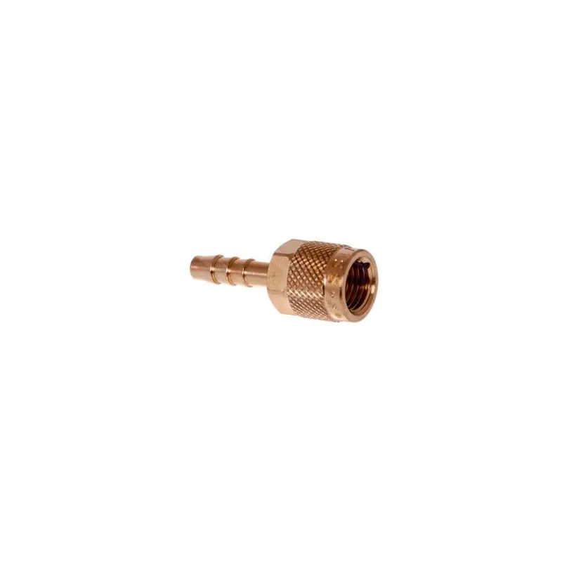Końcówka do zaciśnięcia na wąż o średnicy wewnętrznej ok. 6mm z gwintem wewnętrznym 1/4″ SAE.